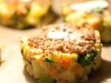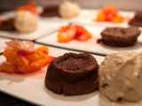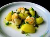 Zutaten: 2 mittelgroße Zucchini 1 Knoblauchzehe 7 Esslöffel Olivenöl 18 ml Weißweinessig Saft von 1/2 Zitrone 10 Minzblätter Salz Pfeffer Dekorieren : Rosa...