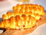 Zutaten: Für die Pizza-Schnecken: 1 Rolle Blätterteig 1/2 rote Zwiebel, gehackt 5 essloffel Mais 5 Scheiben Schinken, in Würfel geschnitten 3 essloffel...