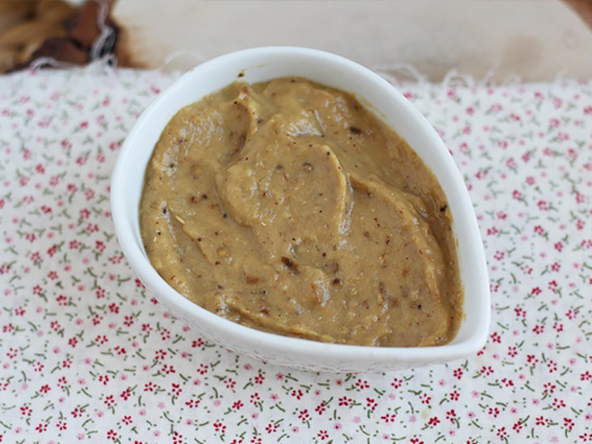 Bewahren Sie den Auberginenkaviar kühl in einem luftdichten Behälter auf.