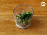 Gießen Sie das gefilterte Austernwasser in einen Zerkleinerer. Kokosmilch, Limettensaft, Chilischote, Ingwer und Koriander hinzufügen. Alles vermischen.