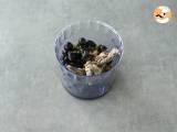 Bereiten Sie die Tapenade vor: Mischen Sie Oliven, Kapern und Sardellenfilets in Olivenöl und Pfeffer.