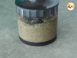 Fügen Sie nach und nach das Öl und dann den Zitronensaft hinzu, während Sie die Zubereitung verrühren.