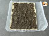 Einen rechteckigen Blätterteig ausrollen und die Tapenade darauf verteilen.