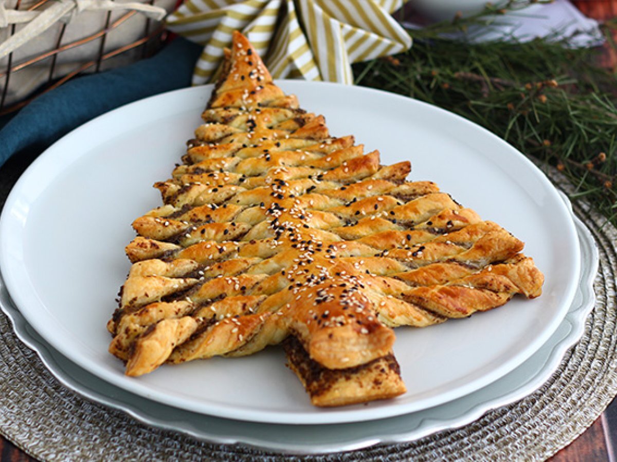Sie können Ihren Blätterteigbaum auch auf andere Weise garnieren, z. B. mit Pesto, Frischkäse usw.