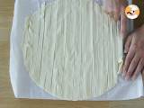 In den Blätterteig etwa 1 cm breite Streifen schneiden.