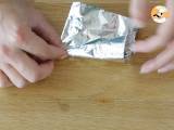 Aus Alufolie Kegel formen, wie im Video gezeigt.