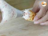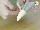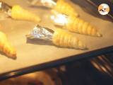 Wickeln Sie einen Streifen Blätterteig um einen Aluminiumkegel.