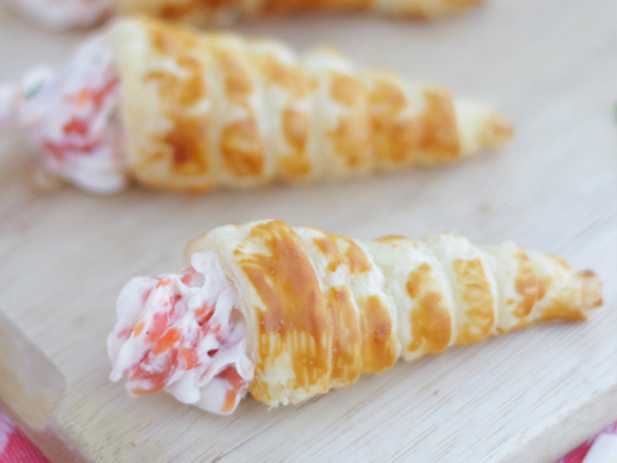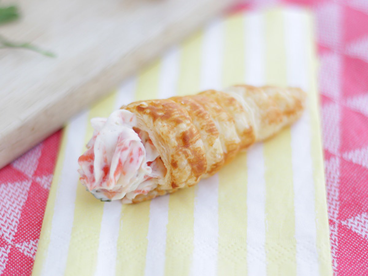 Um Ihren Aperitif auf originelle Weise zu begleiten, präsentieren Sie Ihr Gebäck in Form von Kegeln! Garniert mit einer Mischung aus Frischkäse, Lachs und Schnittlauch wird diese sehr einfach zu reproduzierende Idee Ihre Gäste mit Sicherheit verführen!