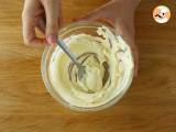 Füllung vorbereiten: Frischkäse, Curry, Salz und Pfeffer vermischen.