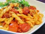 Ja, natürlich. Verwenden Sie u. a. Würfel von Speck (bereits gekocht), Salami oder Schinken. Wenn Sie möchten, können Sie die vegetarische Version auch ohne Wurst zubereiten.