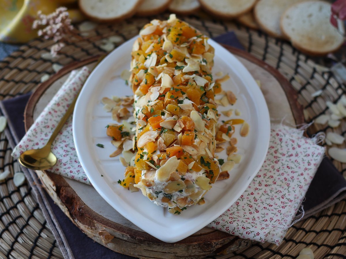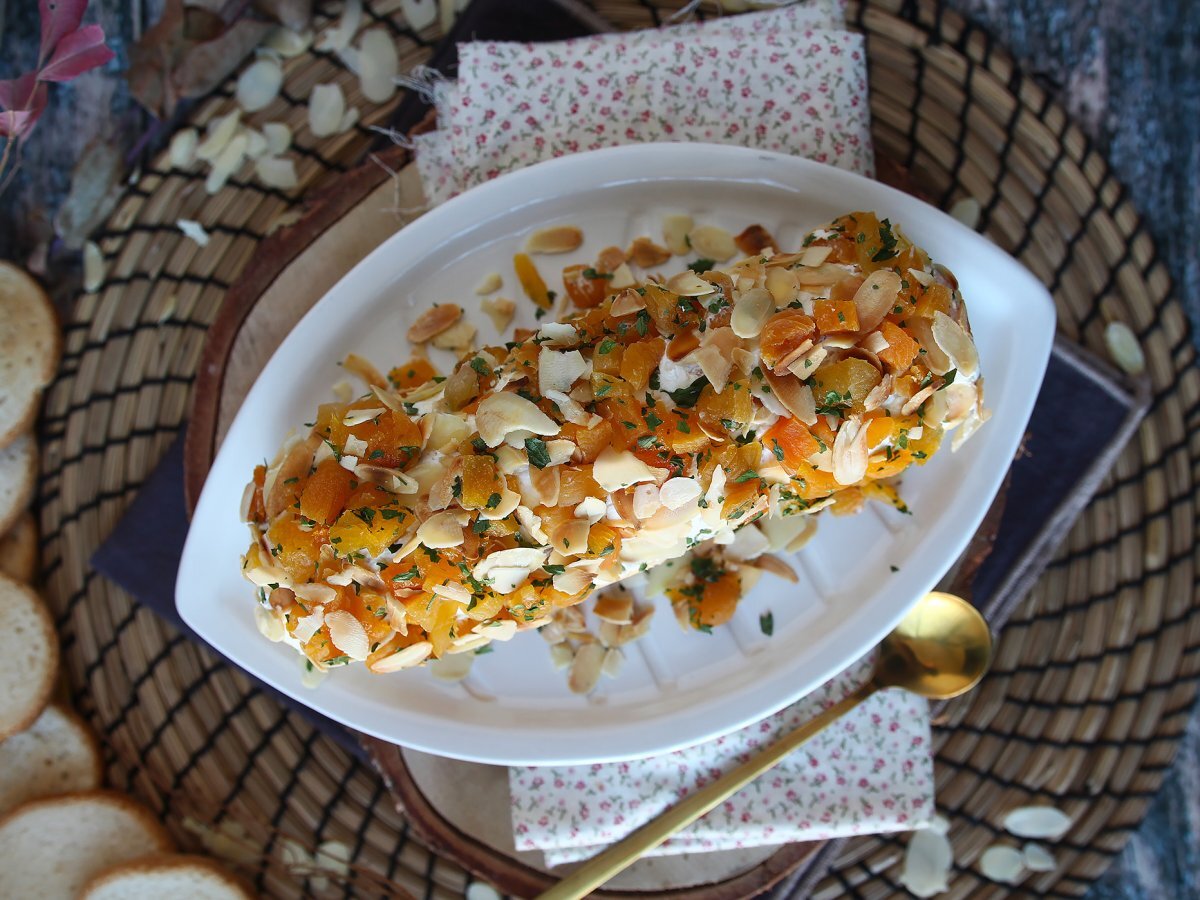 Frischkäse-salami mit aprikosen und mandeln: die perfekte party-vorspeise!