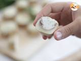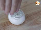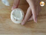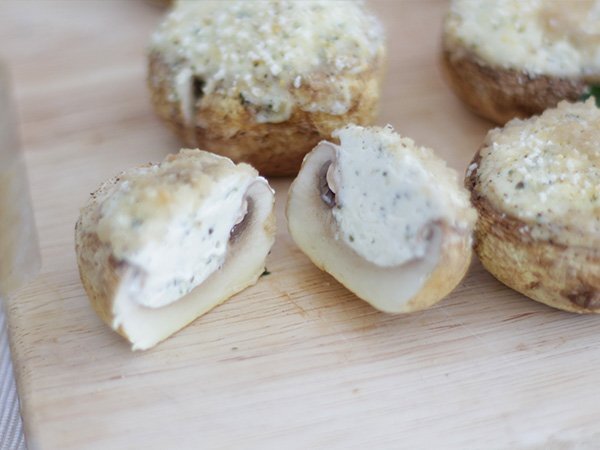 Füllen Sie sie mit einem kleinen Löffel mit Knoblauch und Kräuterkäse.