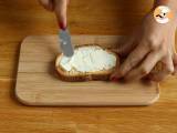 Die Brotscheiben toasten und mit Frischkäse bestreichen.
