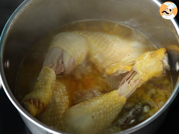 Hähnchen: Wählen Sie Hähnchen mit "rotem Label", das viel schmackhafter ist als ein herkömmliches Hähnchen. Sie können die Schenkel auch durch Hähnchenbrust ersetzen, aber das Ergebnis kann trockener sein.