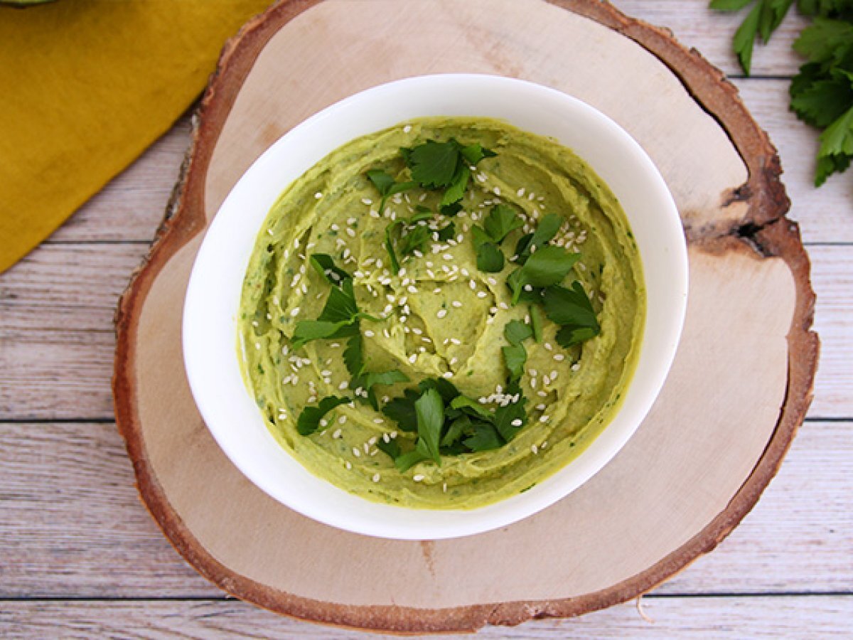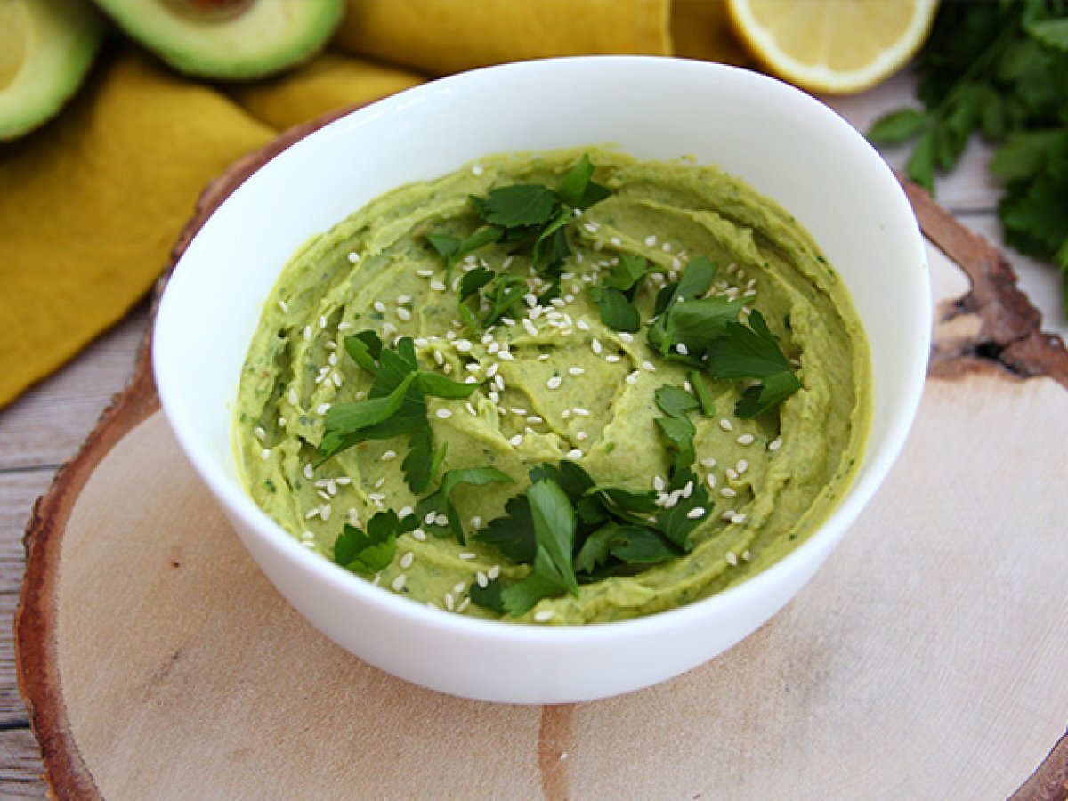 Eine neue Idee, um Ihren Aperitif zu begleiten: ein Hummus mit Avocado! Er verleiht Ihrem Aufstrich nicht nur seine grüne Farbe, sondern macht ihn auch noch cremiger und sämiger. Holen Sie also Ihre Gemüsesticks / Chips heraus und tschin tschin! Ein einfaches Rezept, das schnell zubereitet ist und nicht gekocht werden muss - ideal also ;-) Da es sehr reich an pflanzlichen Proteinen ist, können Sie diesen Hummus zum Beispiel in Ihre Salate geben. So können Sie Ihren Fleischkonsum reduzieren und gleichzeitig neue Geschmacksrichtungen entdecken und sich weiterhin am Essen erfreuen ;-).