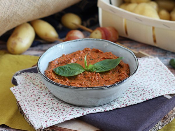 Präsentieren Sie diesen Aufstrich mit kandierten Tomaten, Knoblauch und Basilikum in der Mitte Ihres Hummus, Ihrer Guacamole und Ihrer Tapenade. Diese stark duftende Sauce passt ideal zu Ihren Chips und Gemüsesticks. Ganz ohne Kochen und mit nur 4 Zutaten, Sie werden sehen, der Trick ist schnell erledigt ;-)