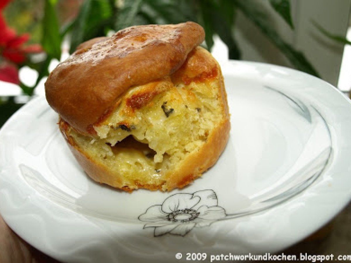 Pinsel mit geschlagenem Ei. - Schieben Sie die Förmchen in der Mitte des vorgeheizten Ofen. Die gießbehälter sofort mit kaltem Wasser 50 ml zu füllen. Dann in den Ofen 200 ° C und ca. 20-25 Minuten braten zurückzukehren.