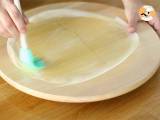 Tragen Sie Olivenöl auf ein Brickblatt auf. Legen Sie ein weiteres darauf und bestreichen Sie es erneut mit Olivenöl. Bedecken Sie es mit einem letzten Brickblatt und bestreichen Sie es mit Olivenöl.