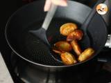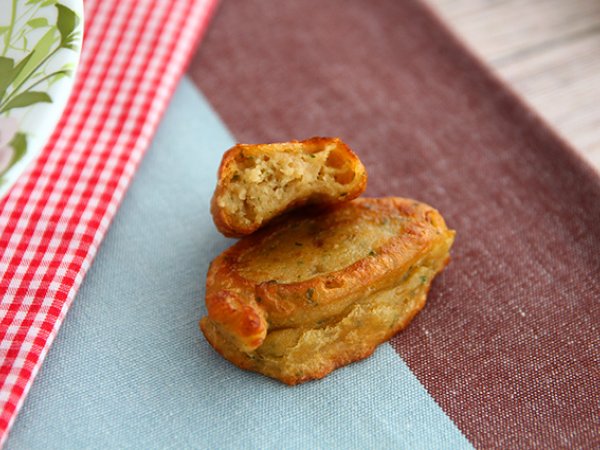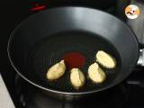 Drehen Sie Ihre Knödel vorsichtig um, sie sollten eine zarte goldene Farbe haben. Nehmen Sie sie aus der Pfanne und legen Sie sie auf saugfähiges Papier.
