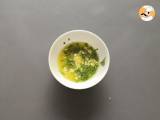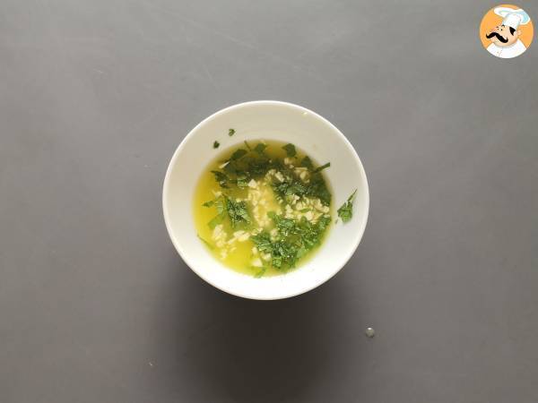 Die Minzblätter und den Knoblauch (in sehr kleine Stücke) mit einem Messer hacken. Anschließend zur Marinade geben, mit Salz und Pfeffer würzen und gut vermischen.