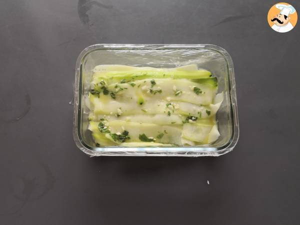 Mindestens 3 Stunden im Kühlschrank ruhen lassen, damit die Zucchini die marinade aufsaugen kann.