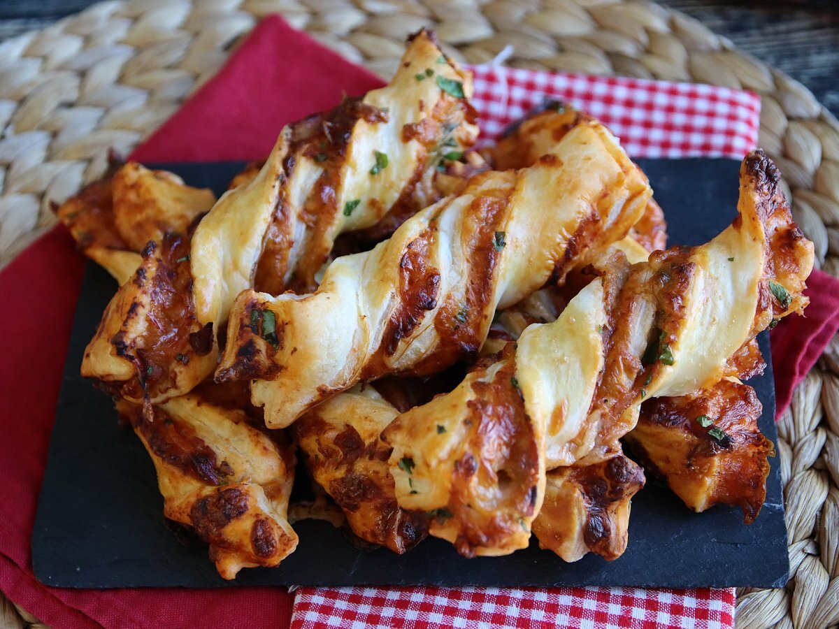 Maxi-blätterteigspiralen (tomate, schinken, mozzarella, petersilie)