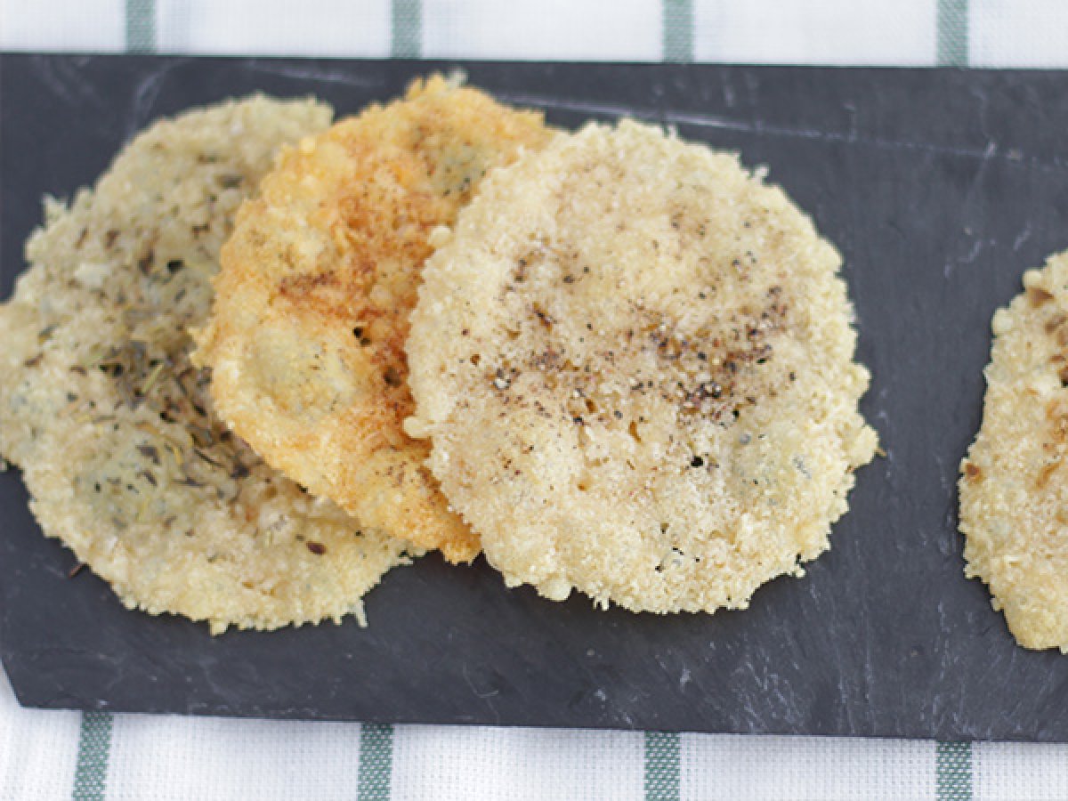 Wenn man seine Gewohnheiten beim Aperitif ein wenig ändern möchte, gibt es nichts Besseres und Einfacheres, als seinen Gästen Parmesanchips anzubieten! Sie sind eine hervorragende Alternative zu industriell hergestellten Chips! Sie müssen nicht gesalzen werden, da der Parmesan bereits gesalzen ist.
