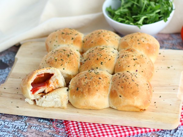 Pizzabrötchen, brötchen gefüllt mit schinken und käse