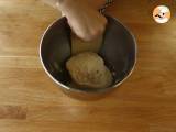 Der Teig: Sie können aus dem Teig ein einfaches Sandwichbrot backen oder ihn anders garnieren: Fügen Sie Schokoladenstückchen hinzu, um eine süße Variante zu erhalten!