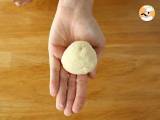 Etwa 10 Minuten lang bei niedriger Geschwindigkeit kneten. Zu einer Kugel formen und mit einem Küchentuch abdecken. Den Teig 2 Stunden bei Zimmertemperatur gehen lassen.