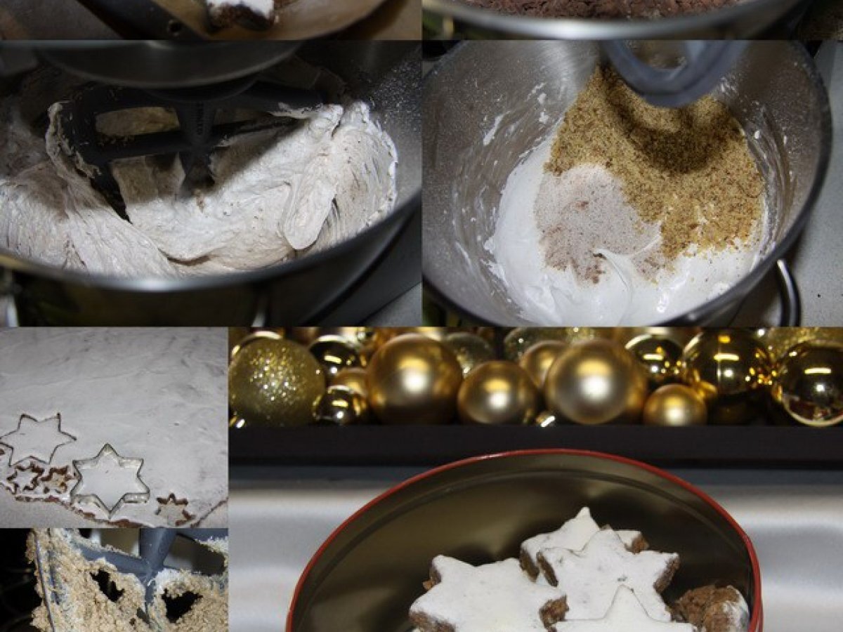 - Die Arbeitsfläche mit Puderzucker bestreuen und den Teig ca. 1 cm dicken Pinsel mit Stern (Ø 5 cm) Beitel und Ort Eiweiß auf dem Backblech.
