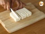 Schneiden Sie Ihren Feta-Block in 6 gleich große Stäbchen.