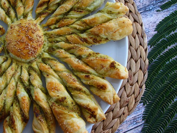 Wie kann ich die Sonne mit Pesto-Blättern variieren?