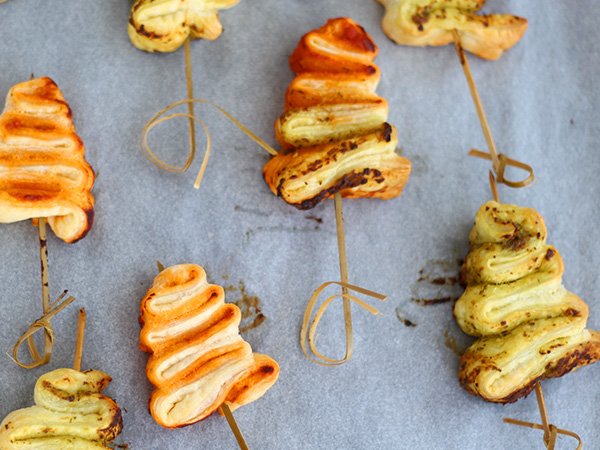 Tannenblätterteig mit pesto für den weihnachtsapéro