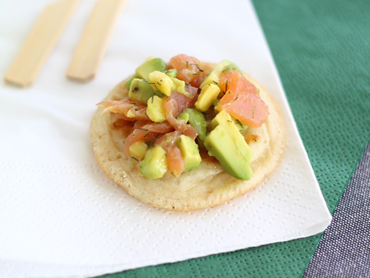 Die Kombi Lachs + Avocado hat sich bislang bewährt! Bringen Sie sie erneut auf Toastbrot zum Aperitif zur Geltung!