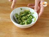 Eine Avocado auf den Boden Ihres Glases zu setzen. Die Streifen von geräuchertem Lachs dazugeben.