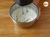Schlagen Sie die Creme mit Mascarpone, gelben Zitronenschalen und einer Prise Salz zusammen.