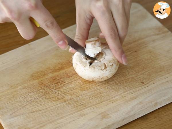 Reinigen Sie Ihre Pilze und entfernen Sie die Stiele, um einen Hohlraum zu schaffen.