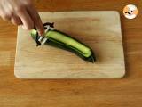 Mit einem Gemüseschäler Zucchinistreifen formen.