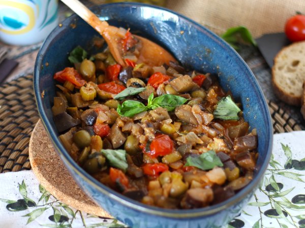 Andere Variationen von Caponata: In Catania werden beispielsweise Paprika (rot und gelb) hinzugefügt. Versuch es!