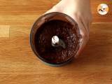 Die gerösteten und geschälten Haselnüsse, die geschmolzene Schokolade, den gemahlenen Kaffee und das Salz in einen Zerkleinerer geben und vermischen, bis ein gleichmäßiger Aufstrich entsteht.