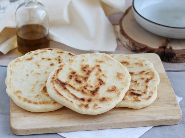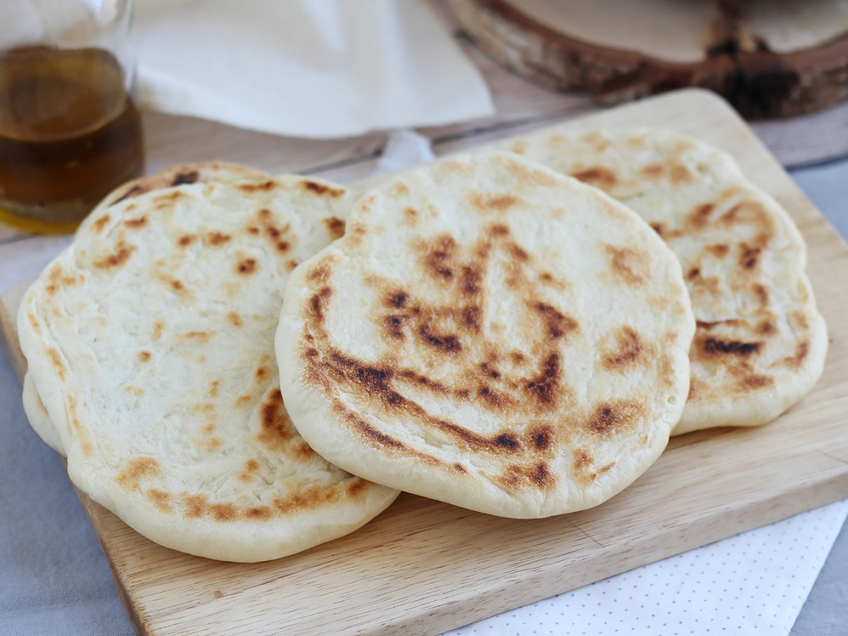 Die Fladenbrote in einer heißen Pfanne bei mittlerer Hitze auf jeder Seite etwa 3 Minuten braten.