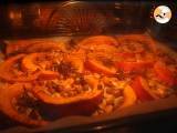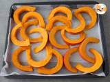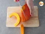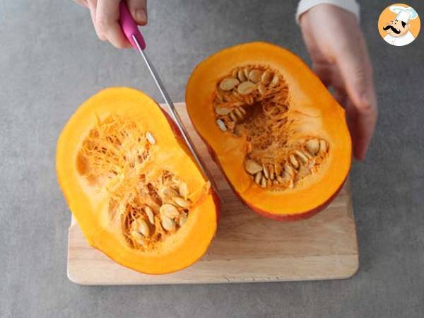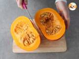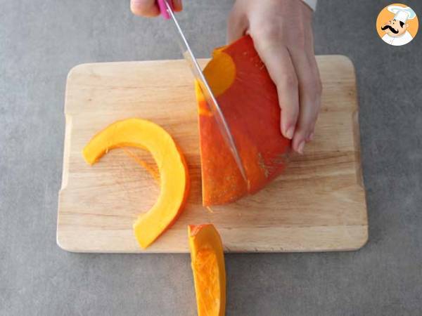 Sobald der Kürbis entleert ist, schneiden Sie ihn in Scheiben.