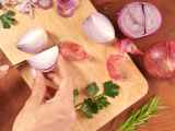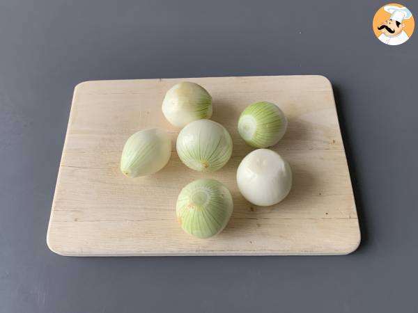 Die Zwiebeln schälen.