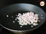 Sobald die Butter geschmolzen ist, die gehackte Schalotte in einer Pfanne anbraten.
