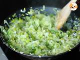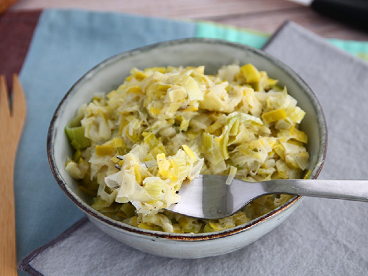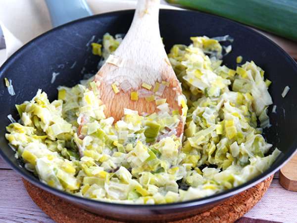 Eine schnellere Lösung als das traditionelle Rezept! Kochen Sie dazu Ihren Lauch etwa zehn Minuten lang in Wasser oder im Dampfgarer. Befolgen Sie dann die klassischen Schritte Ihres Rezepts.