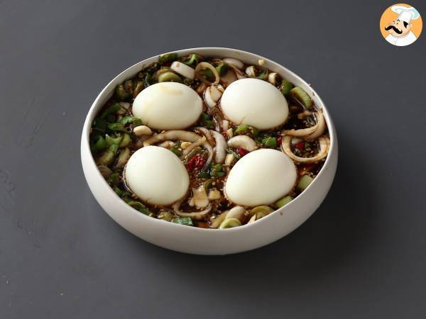 Sie können die Eier mindestens 6 Stunden marinieren, am besten über Nacht, damit sie einen guten Geschmack haben.