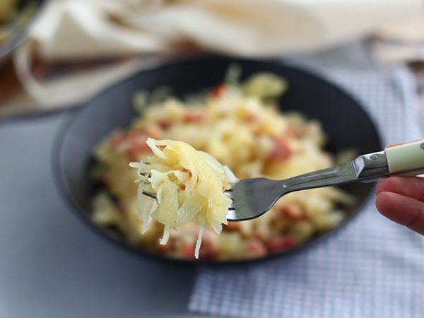 Fertig ist Ihr Weißkohl mit Speckstückchen!