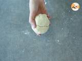 Mehl und Hefe mischen. Eine Prise Salz, Rapsöl und lauwarmes Wasser hinzufügen. Den Teig mit der Hand kneten und eine Kugel formen.