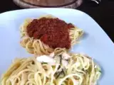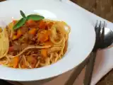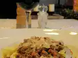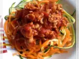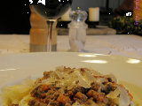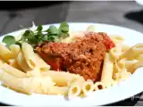 Zutaten: 250 gr Rinderhackfleisch 250 gr Schweinehackfleich 100 gr Pancetta 1 Zwiebel 1 Karotte 1 Stange Sellerie 125 ml Rotwein 500 gr Tomatenfruchtfleisch...